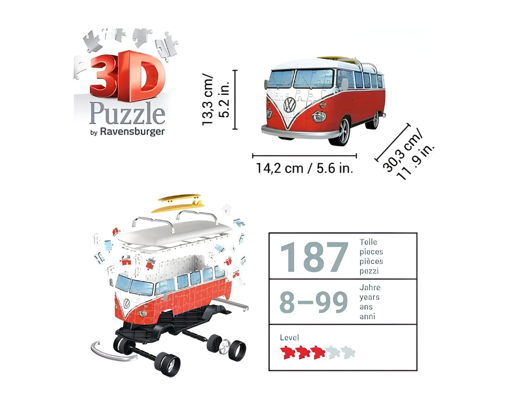 Puzzle 3D Furgoneta Volkswagen T1 187 piezas Ravensburger